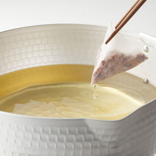 本枯鰹節と北海道産の昆布だけを使用したテトラ型ティーバッグ。素材の薫りと旨味をお楽しみください。