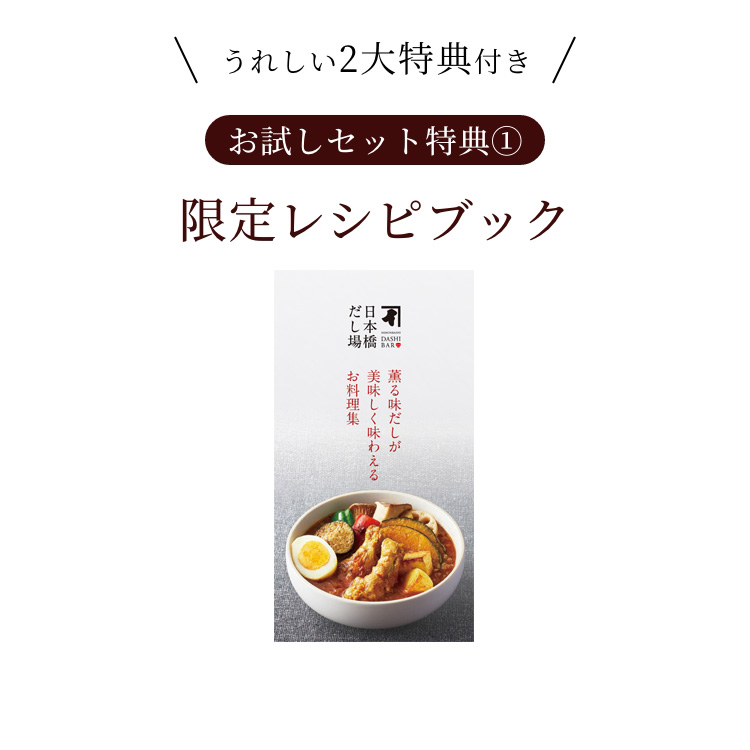 レシピ冊子付きで、すぐにだしポットを始められるセットです。