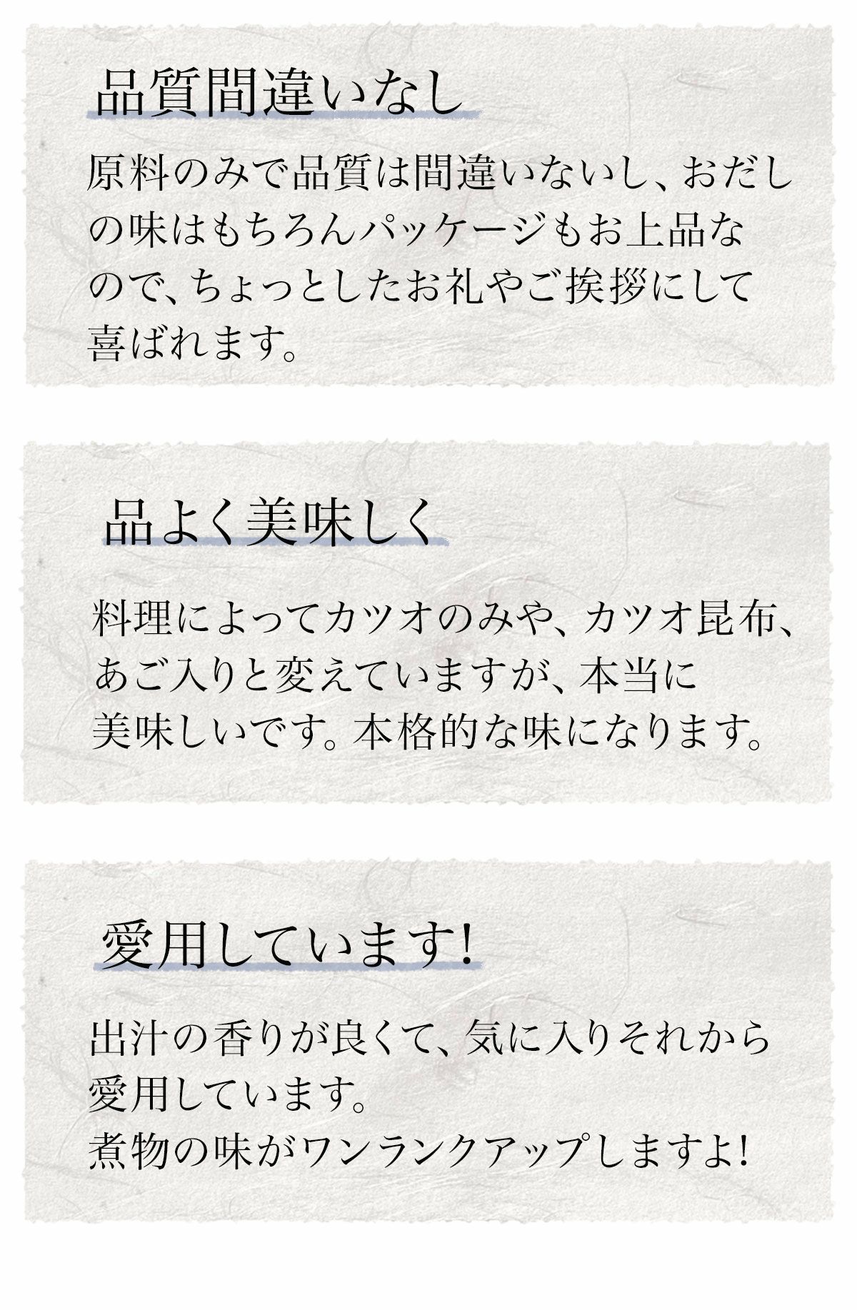 安全な原材料の調味料と鰹節を使用した本格だしパック