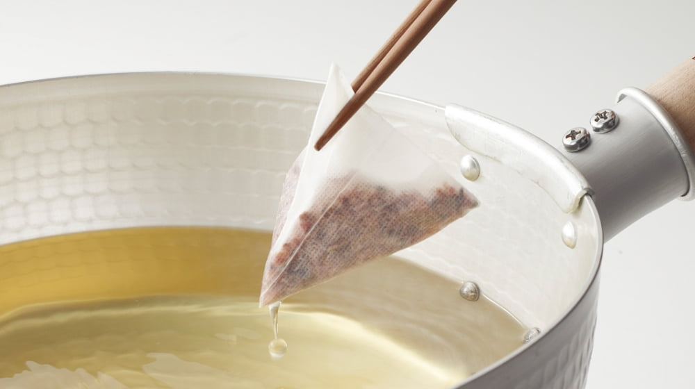 沸騰したお湯にパックを入れ、数分間煮出してから袋を取り除くだけで本格的なだしが楽しめます。
