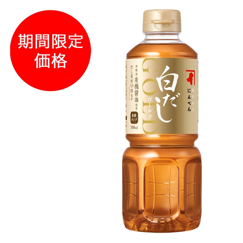 だしの風味を磨き上げてより美味しくなった、白だしゴールド。
