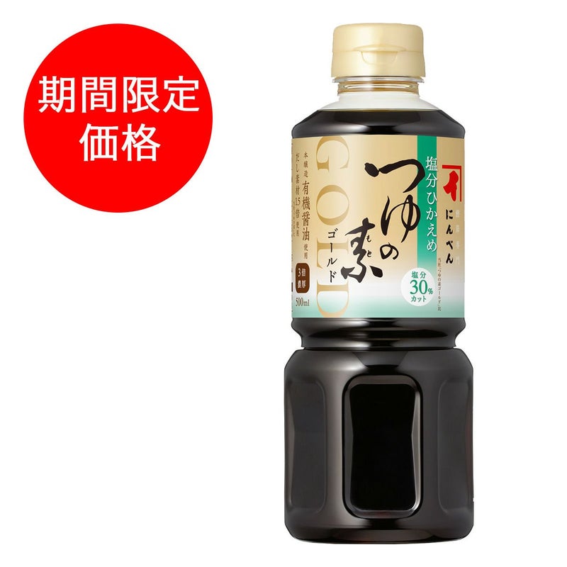 | 使用方法 | 下記の割合を目安にうすめてください。 料理例 本品 水または湯 めんのつけ汁 1 : 2 めんのかけ汁 1 : 5~7 天つゆ・丼もの 1 : 2~3 煮魚 1 : 2~4 肉じゃが 1 : 4~5 鍋もの 1 : 8~9 おでん 1 : 12~14 ※料理によってお好みで、砂糖、みりん等を加えてください。 |