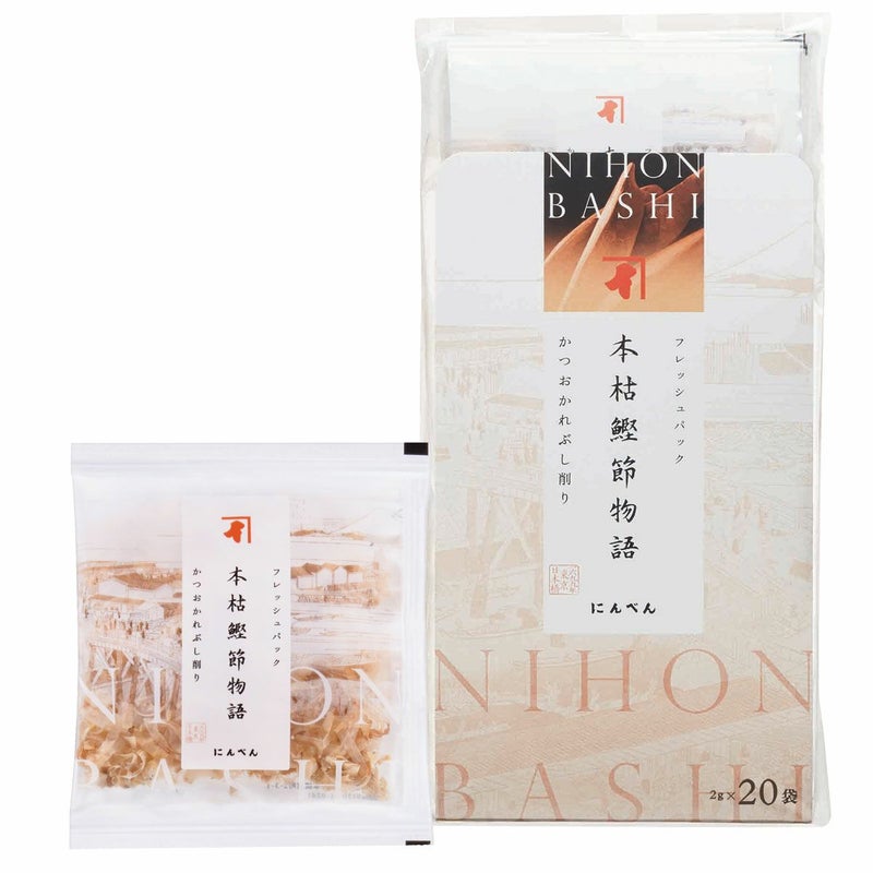 本枯鰹節物語は厳選された鰹を使用し、伝統的な製法で丁寧に作られた本節を使用した削りぶしフレッシュパックです。 本枯鰹節は他の鰹節と比べて深い旨味と豊かな香りが特徴です。