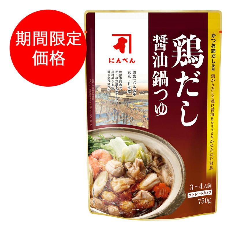 キリっと濃口醤油をきかせた江戸前風の味わい深い寄せ鍋つゆです。