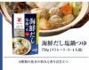これまで築いてきた「だし」の知識をいかし、鰹節を中心に6種の魚介(かつお、さば、まぐろ、ほたて、むろあじ、いわし)の香りと旨みを組み合わせた、具材の旨味引き立つ鍋つゆに仕上げました。赤穂の天塩を使用したすっきりとした味わいの寄せ鍋つゆです。