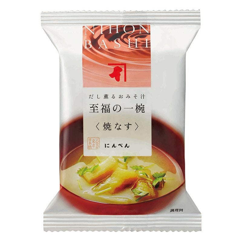 炭火の香ばしさと甘く滑らかな食感の焼きなすが、食欲をそそるお味噌汁です。