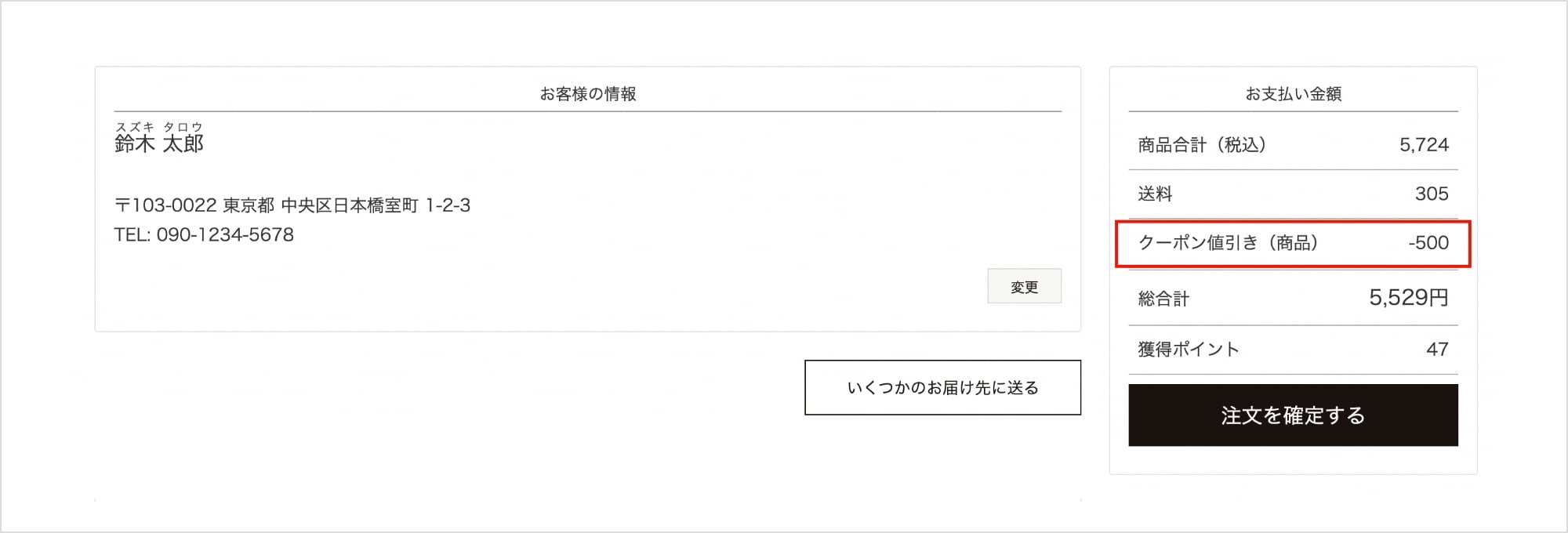 お支払い金額にクーポン値引きが適用されているか確認後、注文を確定してください。