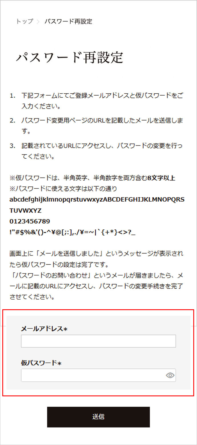 メールアドレス:以前、ご登録いただいておりますメールアドレスをご入力ください。