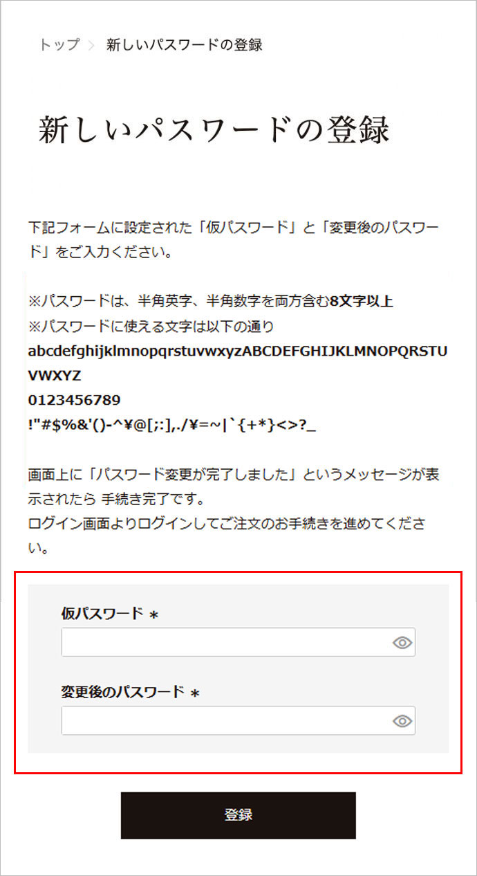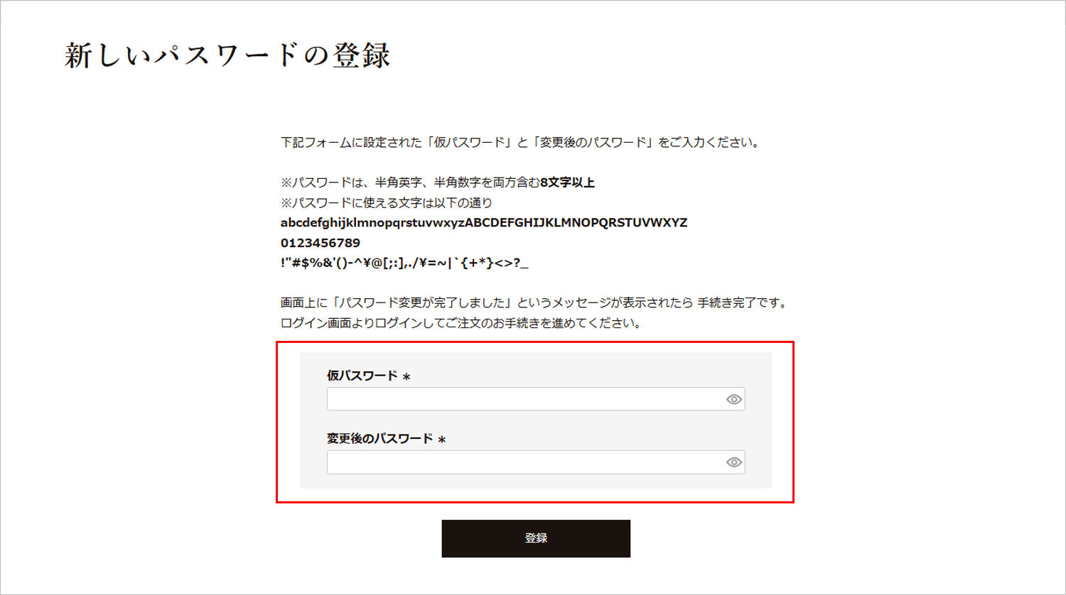 仮パスワード:お客様で任意の仮パスワードを設定ください。