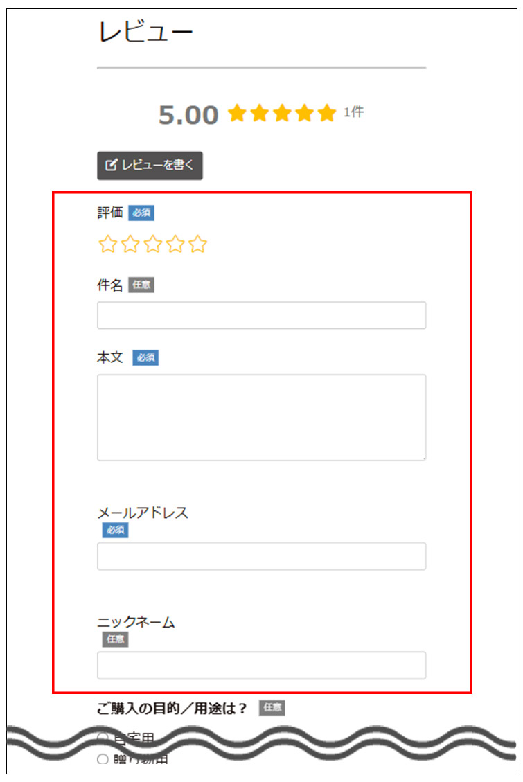 レビューにはニックネームが表示されますのでご記入ください。