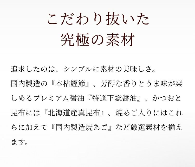 他の画像を見る 常温便 税率8% ネット限定 初回限定 初回購入者限定・お試しセット ※お一人様1点限り 【クロネコゆうパケット】公式ECサイト限定 本枯鰹節 薫る味だしお試しセット《送料無料》<常温・N> 販売価格: ¥ 1,080 税込 詳細を見る お気に入りに登録する