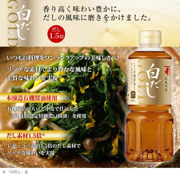 他の画像を見る 常温便 税率8% ケース商品 希釈タイプ 白だしゴールド 500ml×12本・ケース入り(送料無料)<常温・O> 通常価格: ¥ 6,518 のところ 販売価格: ¥ 5,508 税込 カートに入れる お気に入りに登録する